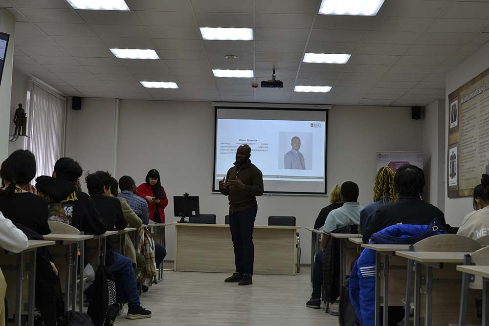 Об обучении в вузе и карьерных возможностях участники встречи узнали от выпускников из числа иностранных обучающихся. Так, у присутствующего на мероприятии Павла Нгатейо знакомство с университетом началось с 2009 года. В настоящее время он имеет статус не только выпускника специалитета и аспирантуры по юридическому профилю, но и преподавателя юридического института. О своём пути он рассказал на русском и французском языках.