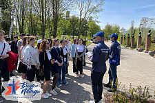 В рамках акции «Маршрут Памяти» волонтёры НИУ «БелГУ» проводят для обучающихся школ города Белгорода пешеходные экскурсии по памятным местам областного центра. На предпраздничной неделе экскурсоводами выступили студенты Вячеслав Максимов (институт экономики и управления) и Александр Цуканов (педагогический институт), а также администратор Центра волонтерского движения «ДоброТворец» НИУ «БелГУ» Наталья Парынцева.