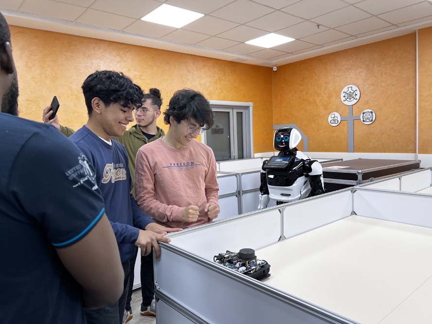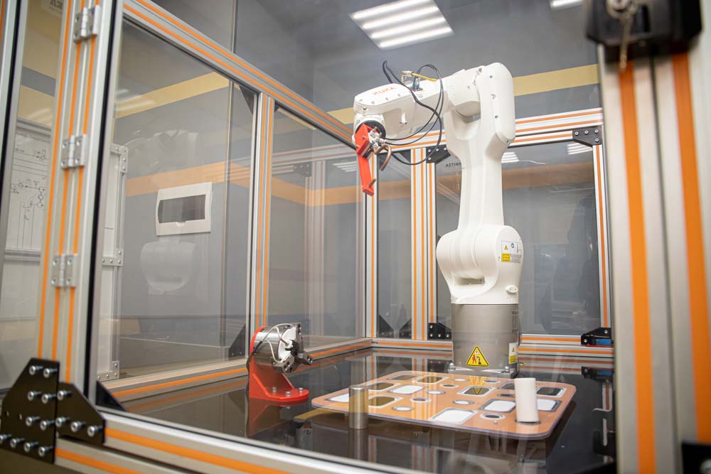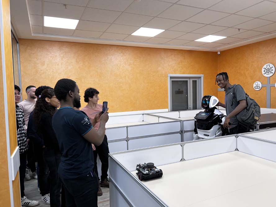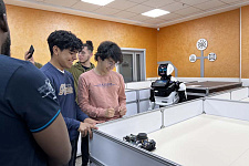 Выпускники подготовительного факультета посетили лаборатории автоматизации и робототехники на базе инжинирингового колледжа. Они смогли пообщаться и сфотографироваться с роботом-ассистентом, познакомиться с полигоном для соревнований «Робостарт», а также с роботом-манипуляторам «Кука».