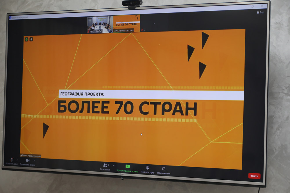 В медиацентре НИУ «БелГУ» в формате телемоста состоялась традиционная встреча с экспертами SputnikPro на тему «Не переписывая историю. Как создать и реализовать проект в супер новых медиа», участниками которой стали студенты из разных институтов вуза. Гостя встречи – редактора центра инновационной журналистики «Россия сегодня» Артёма Буфтяка – участникам представила выступившая модератором начальник управления проектов в области образования и социальной сфере дирекции государственных проектов МИА «Россия сегодня» Наталья Тюрина.