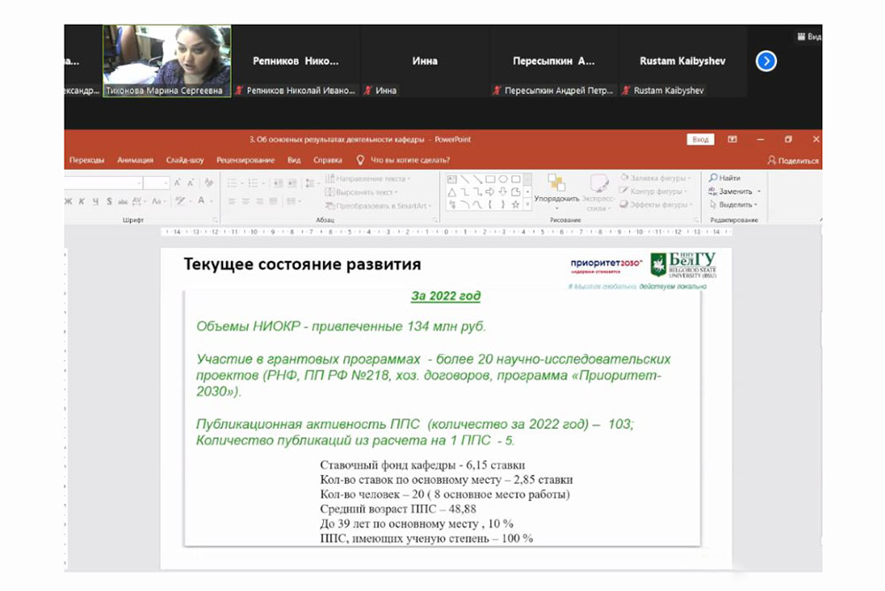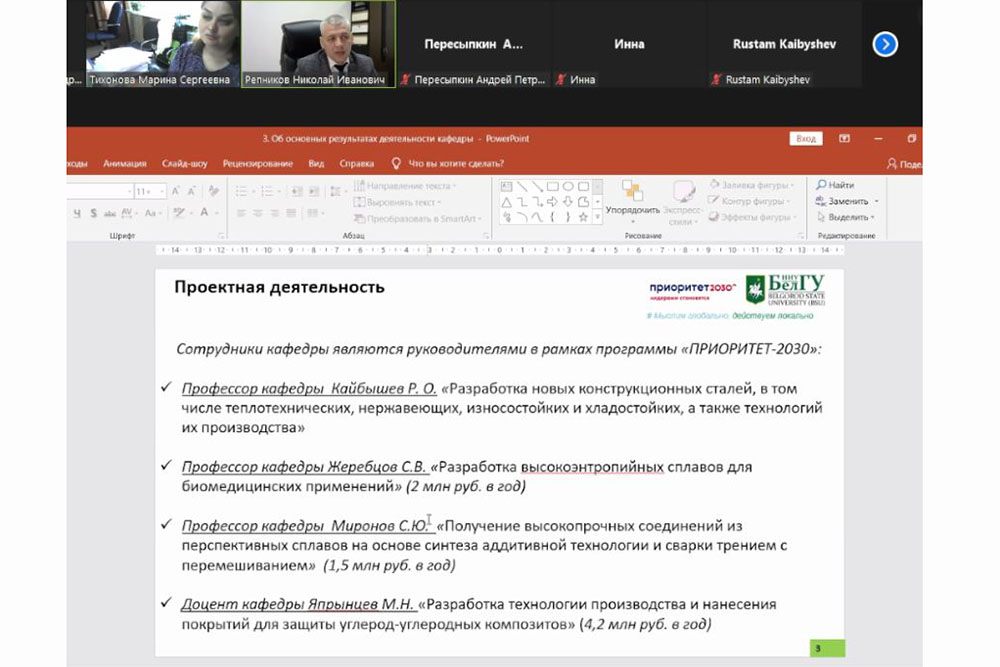 На заседании совета платформы также был заслушан доклад и.о. заведующего кафедрой материаловедения и нанотехнологий института инженерных и цифровых технологий НИУ «БелГУ» Марины Тихоновой об основных результатах и перспективах развития кафедры на ближайший год.