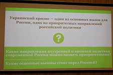 В институте межкультурной коммуникации и международных отношений состоялась встреча-дискуссия, посвящённая актуальным проблемам и вызовам внешней и внутренней политики современной России.
