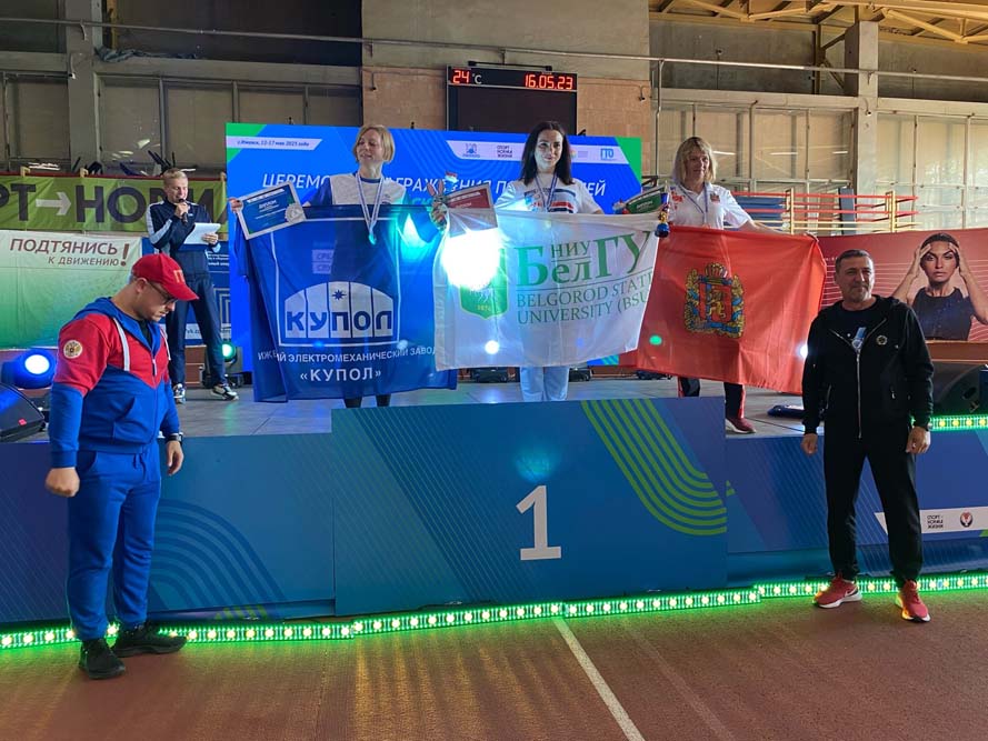 По итогам четырёх соревновательных дней пятеро представителей НИУ «БелГУ» поднялись на пьедестал почёта. Заведующий кафедрой спортивных дисциплин факультета физической культуры Александр Воронков и ассистент кафедры теории и методики физической культуры Давид Аракелян стали серебряными призёрами по итогам личного многоборья, старший преподаватель кафедры физического воспитания Татьяна Школина и старший преподаватель кафедры теории и методики физической культуры Дарья Бывшева поднялись на высшую ступень пьедестала почёта. Ассистент кафедры спортивных дисциплин Елена Боровская показала второй результат.
