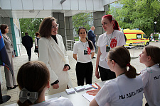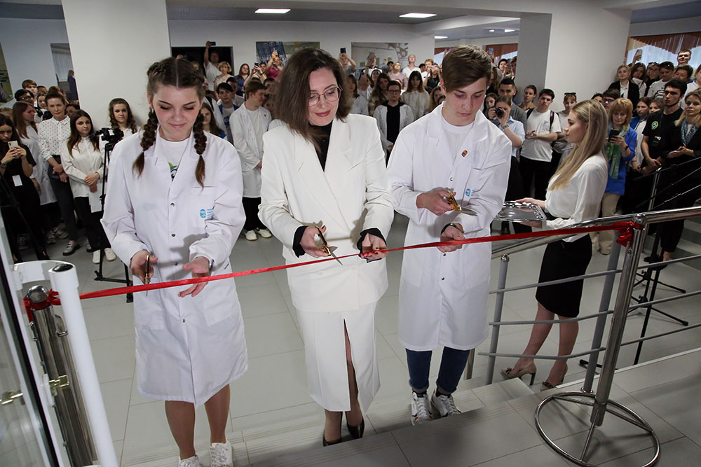 Права перерезать символическую красную ленту с и.о. ректора НИУ «БелГУ» Евгенией Карловской удостоились выпускники медицинских классов Дарья Малахова и Матвей Котляров.