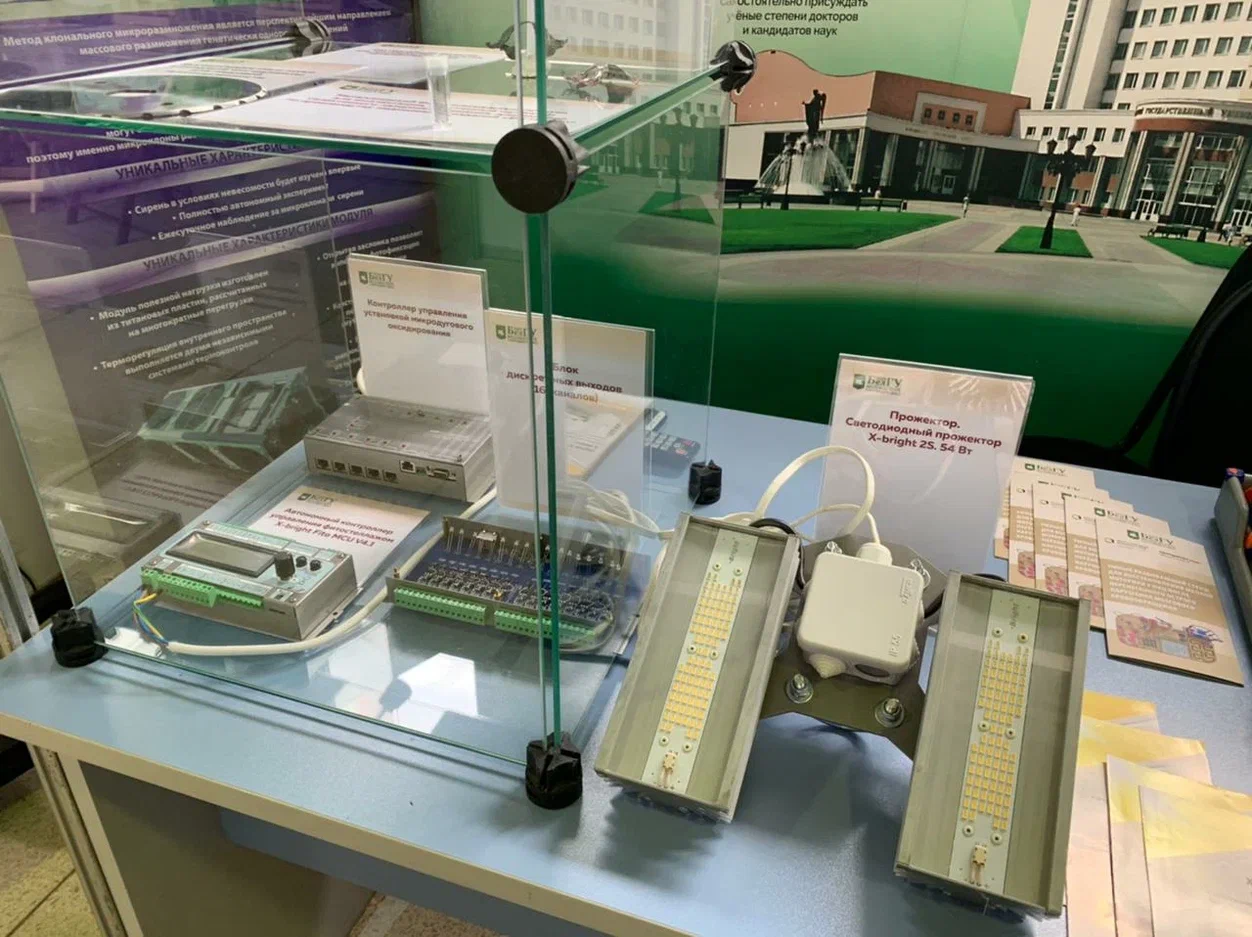 В этом году на межрегиональной выставке НИУ «БелГУ» экспонирует 14 высокотехнологических проектов. Программа деятельности научного центра мирового уровня «Инновационные решения в АПК» представлена несколькими из них. Гости могут ознакомиться с устройством для автономного выращивания микроклонов растений в космосе и влагочувствительным элементом на основе цитрогипса для датчиков влажности воздуха. Оба проекта реализуются под руководством директора ООО «Инжиниринговый центр НИУ «БелГУ», кандидата физико-математических наук, доцента Ивана Никулина. Также здесь представлен способ получения сорбционной кормовой добавки для сельскохозяйственных животных и птицы, предложенный командой учёных под руководством профессора кафедры общей химии, доктора технических наук, профессора Александра Везенцева.