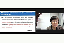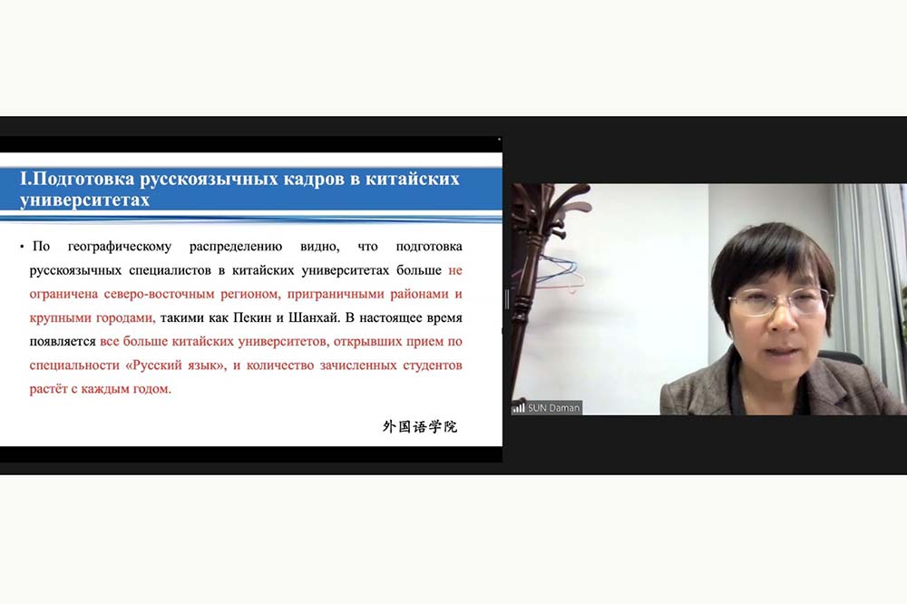 От китайских партнёров выступила профессор, заместитель директора Института иностранных языков Китайского Нефтяного Университета Сунь Дамань с докладом на тему «Подготовка и перспективы русскоязычных кадров в китайских университетах в новую эпоху». Она отметила значительный интерес у китайских студентов к российским программам высшего образования, русскому языку и культуре.