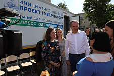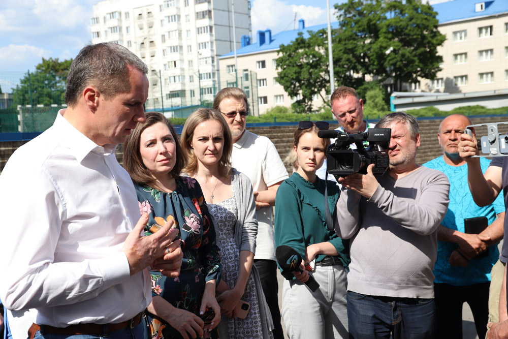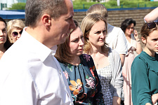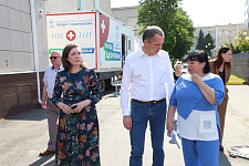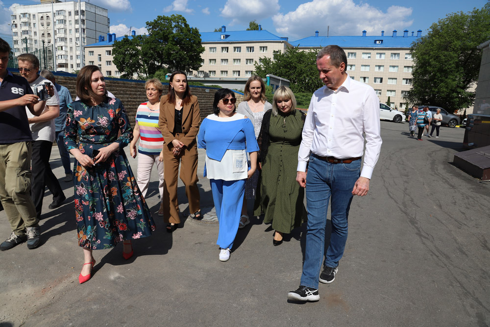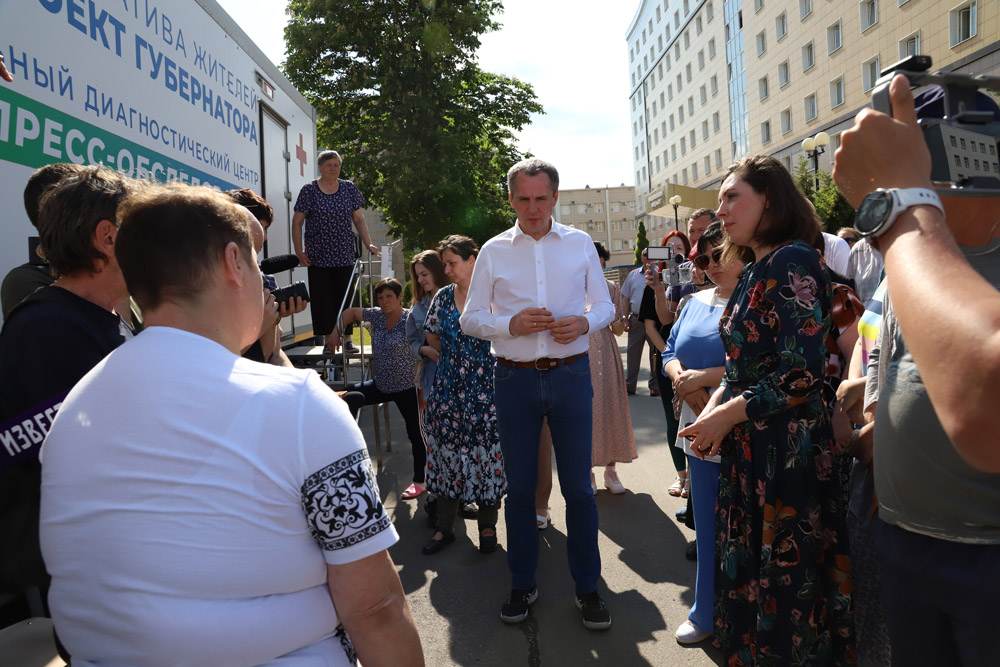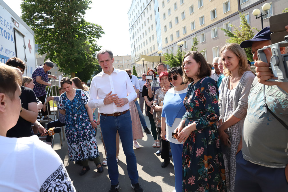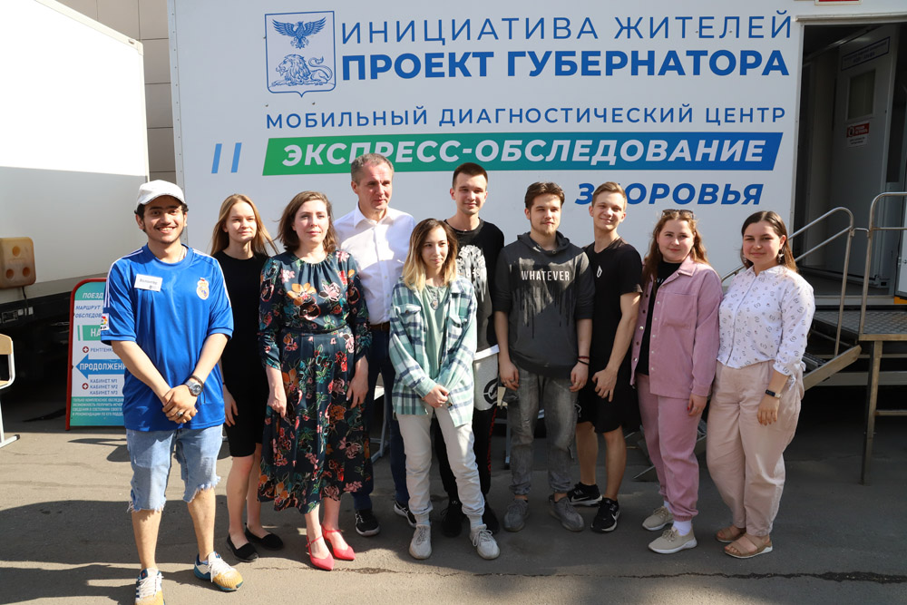 В первый день работы «Поезда здоровья» в студенческом городке прибыли губернатор Белгородской области Вячеслав Гладков и исполняющая обязанности ректора НИУ «БелГУ» Евгения Карловская.