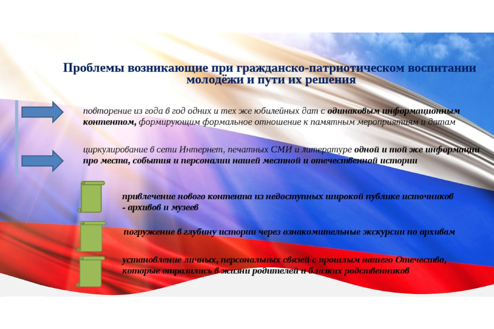Выступивший содокладчиком по вопросу начальник Управления по делам архивов Белгородской области, выпускник НИУ «БелГУ» Павел Субботин обозначил круг проблем, связанных с гражданско-патриотическим воспитанием, и предложил пути их решения.