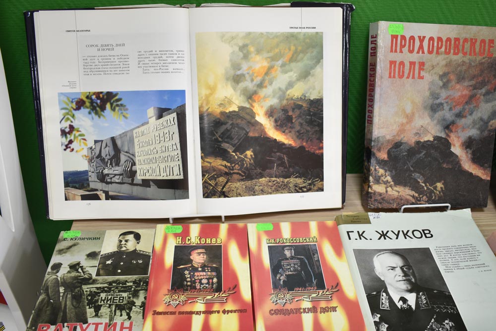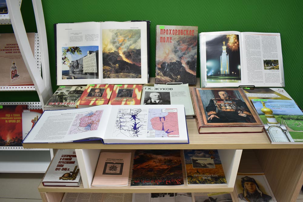 На выставке в Центре гражданско-патриотического воспитания обучающихся, приуроченной к 80-летию Курской битвы, представлены издания из фонда Научной библиотеки имени Н.Н. Страхова, посвященные в том числе легендарному Прохоровскому сражению.