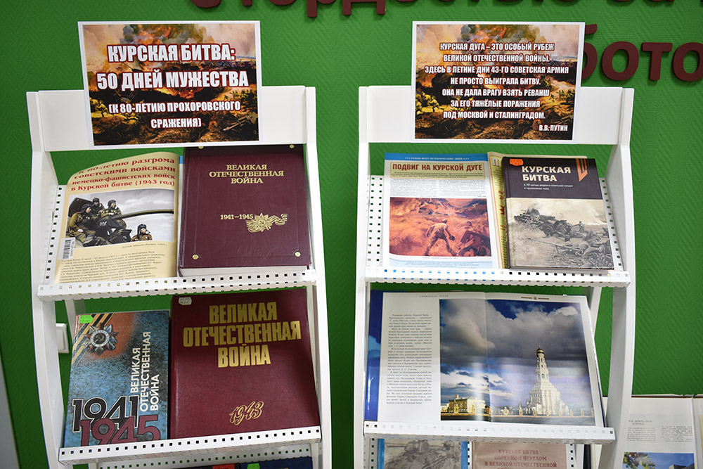 Ознакомиться с книжной экспозицей «Курская битва: 50 дней мужества» в Центре гражданско-патриотического воспитания обучающихся (ул. Победы, 85, корп. 15, к. 2-22) студенты, сотрудники и гости университета смогут до конца августа.