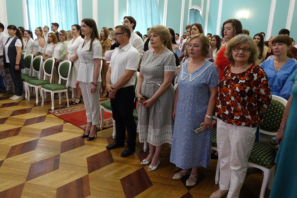 Выпускников поздравили и.о. проректора по воспитательной работе и молодёжной политике НИУ «БелГУ» Елена Цуканова и директор института общественных наук и массовых коммуникаций Сергей Борисов.