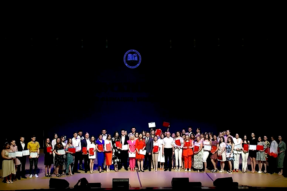 Алексей Евгеньевич и Андрей Андреевич поздравили выпускников и вручили 63 диплома с отличием.