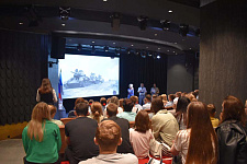 Накануне торжественного дня делегация НИУ «БелГУ» приняла участие в памятном мероприятии музея-диорамы «Курская битва. Белгородское направление», где ознакомилась с архивными видеохрониками легендарного сражения и фондом музея.