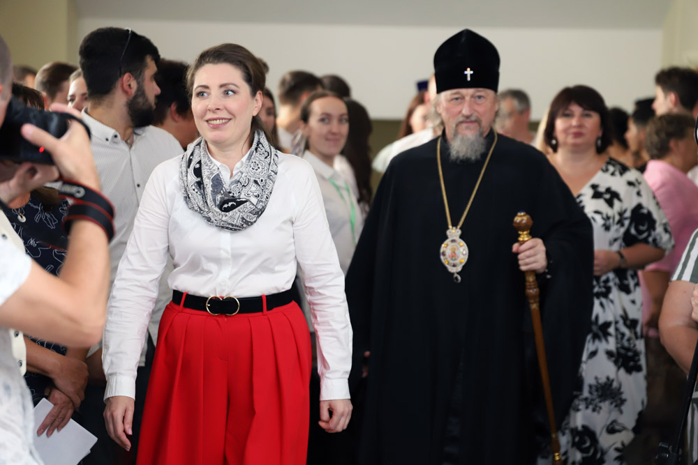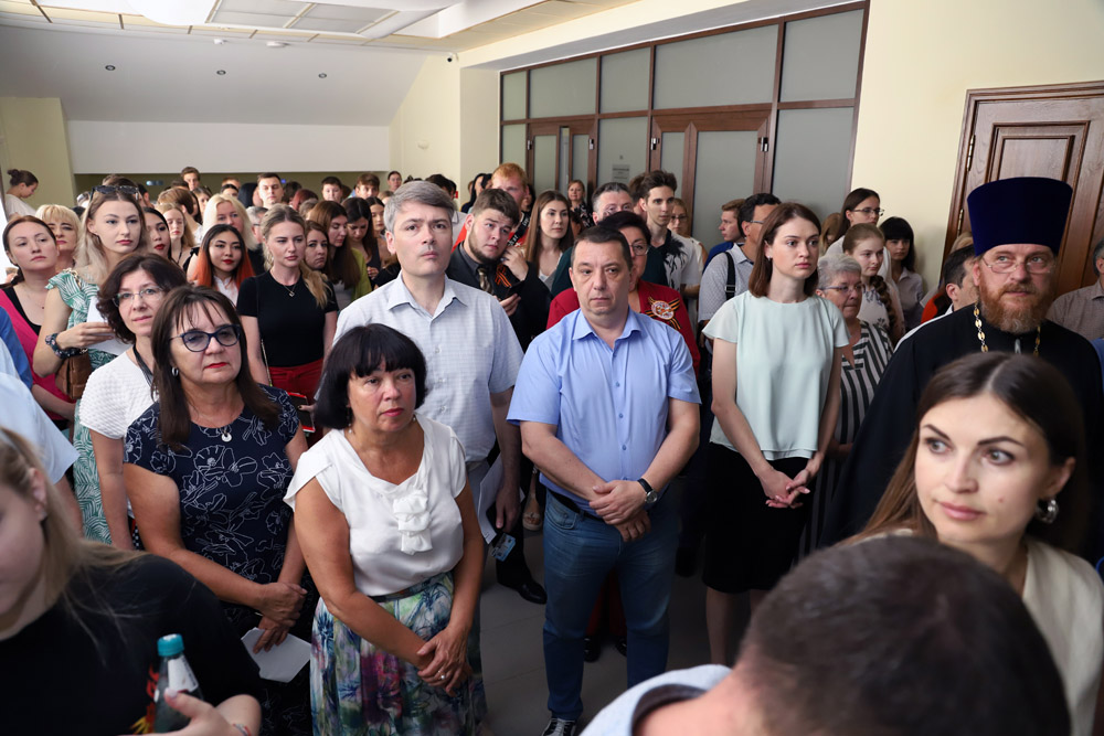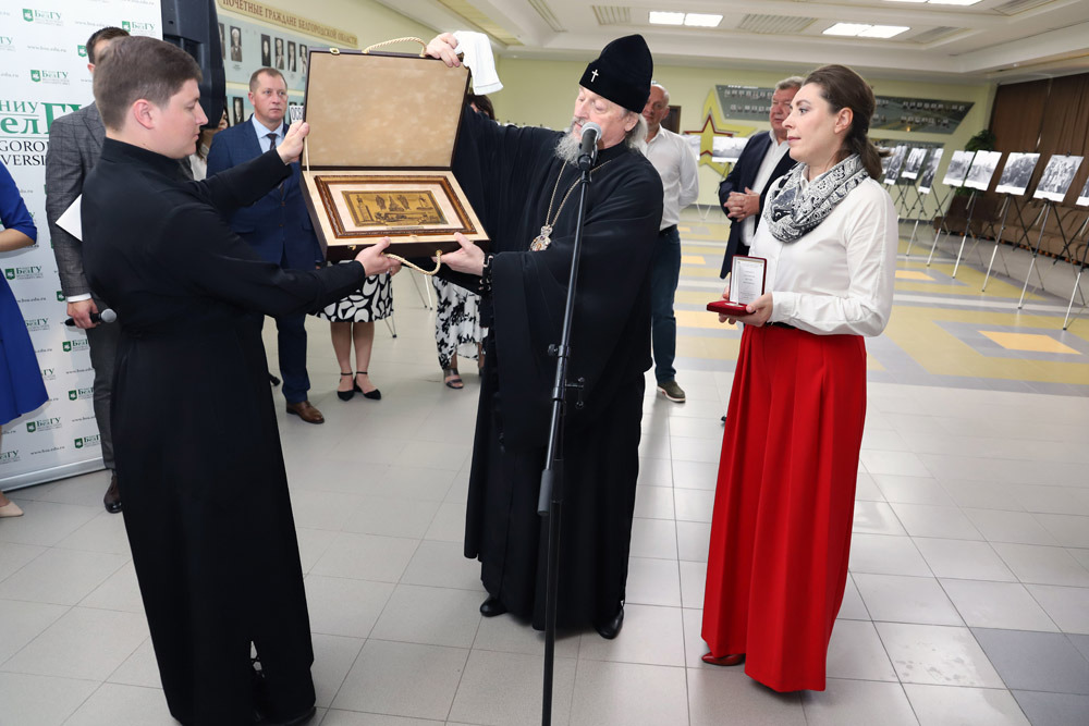 Митрополит Белгородский и Старооскольский Иоанн рассказал о явлении иконы Божией Матери в госпитале Вишневского, где проходят лечение российский солдаты и офицеры, сражающиеся сегодня за будущее России. Владыка Иоанн заметил, что мы черпаем силы от нашего прошлого, написанного светом. Митрополит вручил Евгении Карловской Патриарший памятный знак в честь победы в сражении под Прохоровкой, передал его графическое изображение для музея истории НИУ «БелГУ».