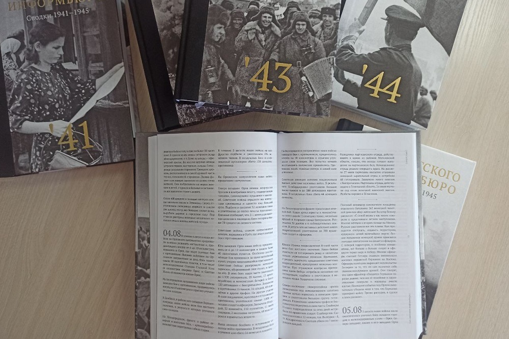 Подарочное издание в восьми томах «От советского информбюро. Сводки 1941-1945», которого нет в свободной продаже, представила руководитель проекта «Освобождение.1943» – начальник управления проектов в области образования и социальной сфере МИА «Россия сегодня» Наталья Тюрина.
