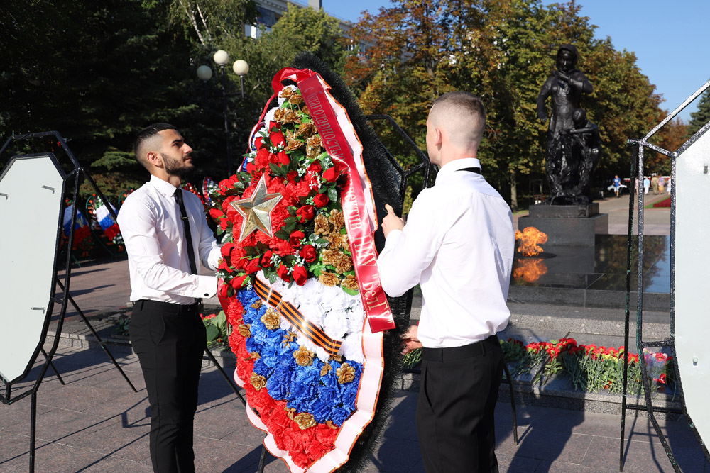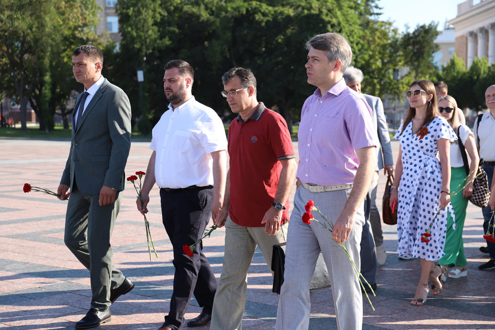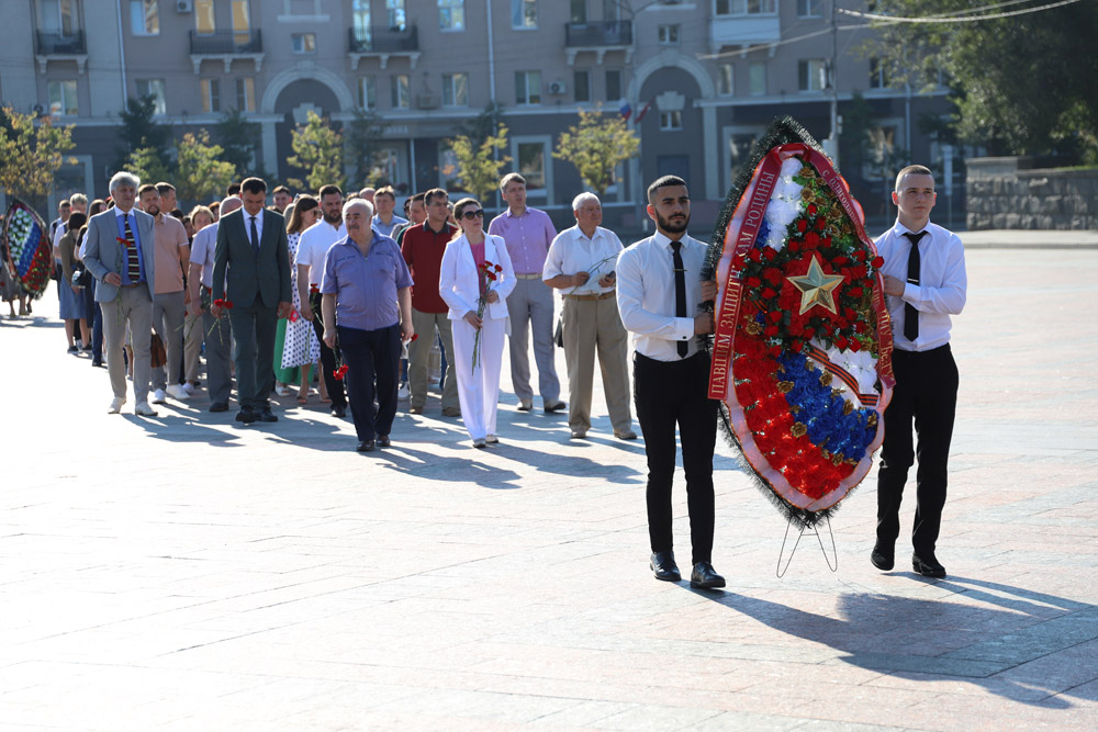 Знаменательную дату представители ректората, сотрудники и студенты отметили возложением цветов к Вечному огню и экскурсией по памятным местам в центре города.