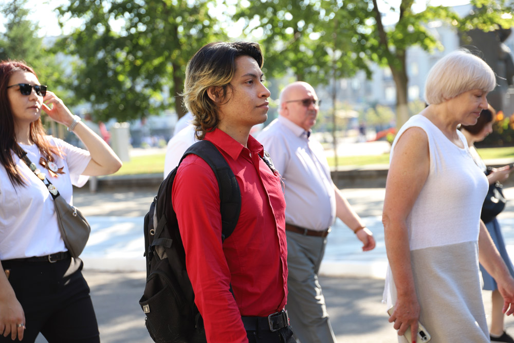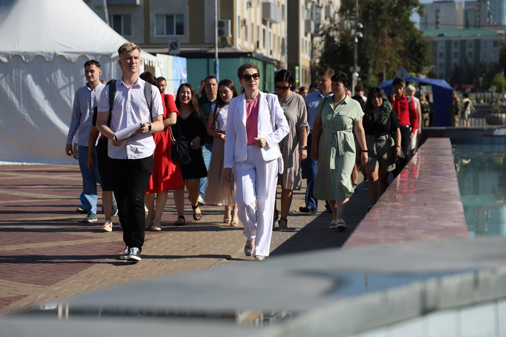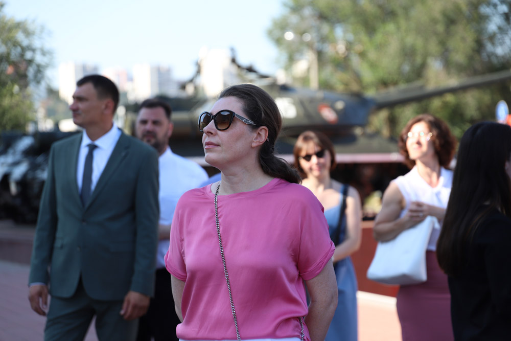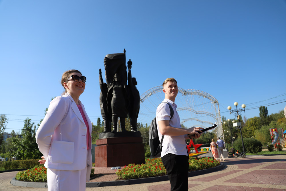 Экскурсионная группа проследовала от Соборной площади к Музею-диораме «Курская битва. Белгородское направление» через парк Победы по Аллее Славы, где установлены бюсты Героев Великой Отечественной войны и Героев России, среди которых выпускники Белгородского госуниверситета Владимир Бурцев и Денис Зуев.