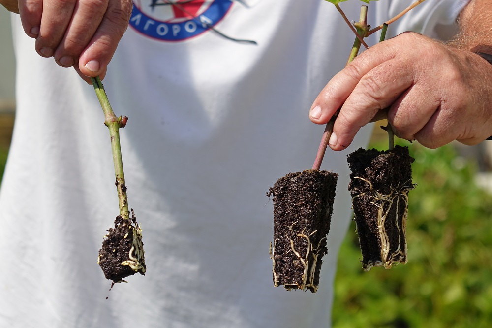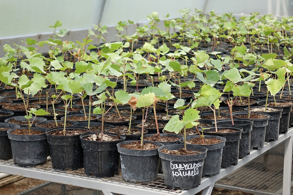 После укоренения в условиях водного тумана саженцам требуется перевалка в литровые горшки, где они дорастают до размеров, необходимых для высадки в школки, а затем – на поле. На сегодняшний день сотрудники ботсада укоренили 20 тысяч виноградных черенков двух сортов. Спрос на них уже отмечается со стороны фермеров из Ровеньского района, которые намерены разбить виноградники на площади в 30 га.