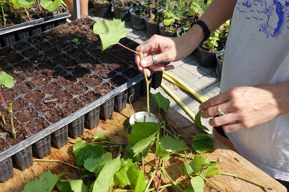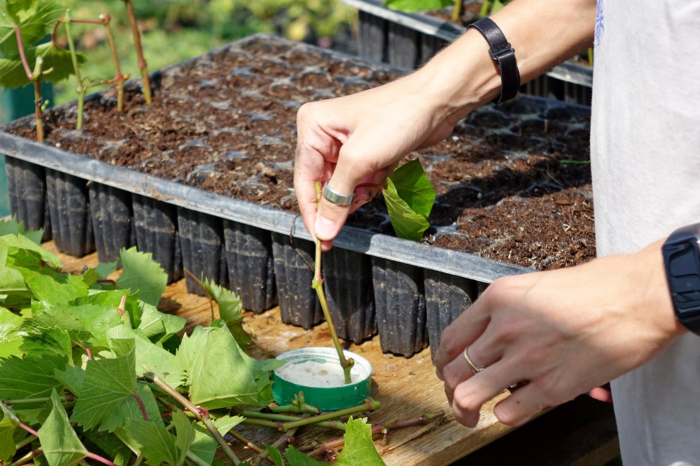 Как рассказал руководитель сектора виноградарства Ботанического сада НИУ «БелГУ» Андрей Варава, освоен новый скоростной способ укоренения черенков. Выход саженцев увеличивается примерно на один год. Для укоренения на маточном поле с полученной коллекции материнских растений из зелёной массы нарезают черенки винограда, оставляя три почки и верхний лист. После этого растение обмакивается в раствор с гормональным стимулятором корнеобразования и помещается в кассеты с заранее подготовленным почвенным субстратом специального состава.