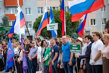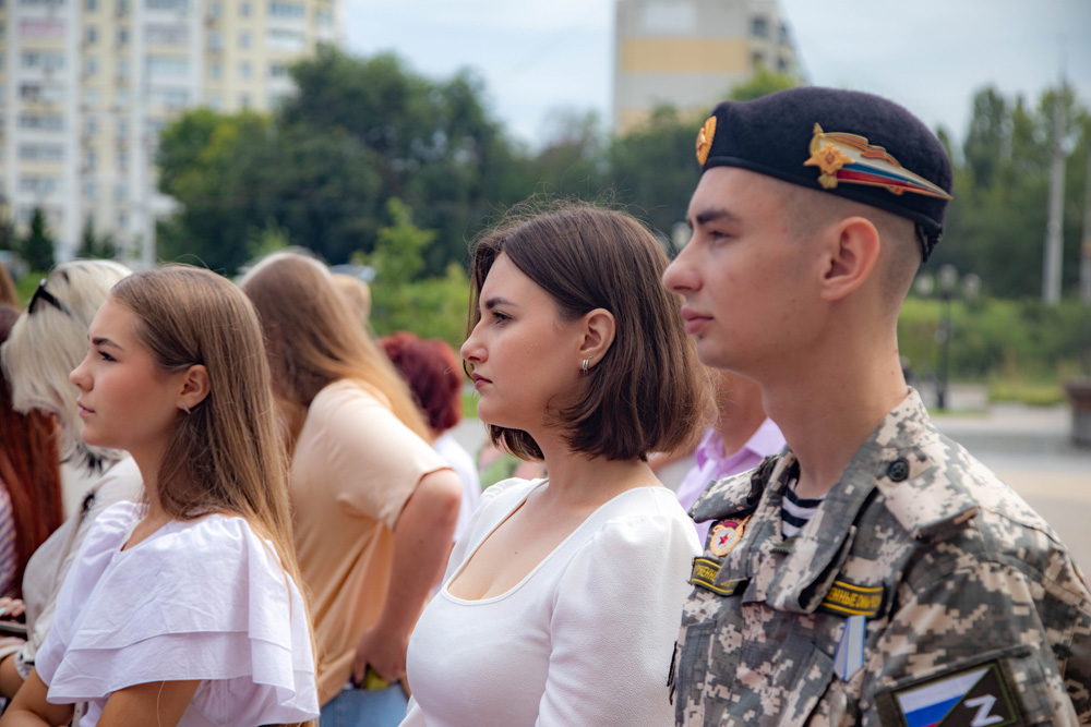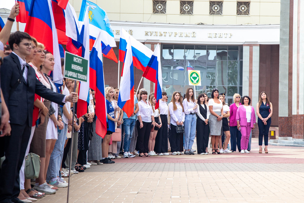 Торжественная линейка, посвящённая Дню государственного флага Российской Федерации, объединила на университетской площади студентов-первокурсников из всех институтов и колледжей Белгородского госуниверситета.