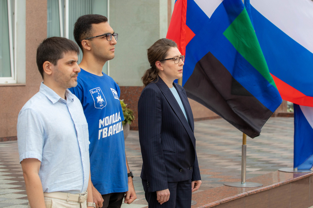 Приветствуя участников, директор Центра общественно-политического просвещения НИУ «БелГУ» Роман Травин подчеркнул, что флаг является важным политическим символом. Точку зрения Романа Андреевича разделил и руководитель нового студенческого объединения «Молодая Гвардия» НИУ «БелГУ» Тарих Рамин оглы Аскеров, поздравив присутствующих с праздником.