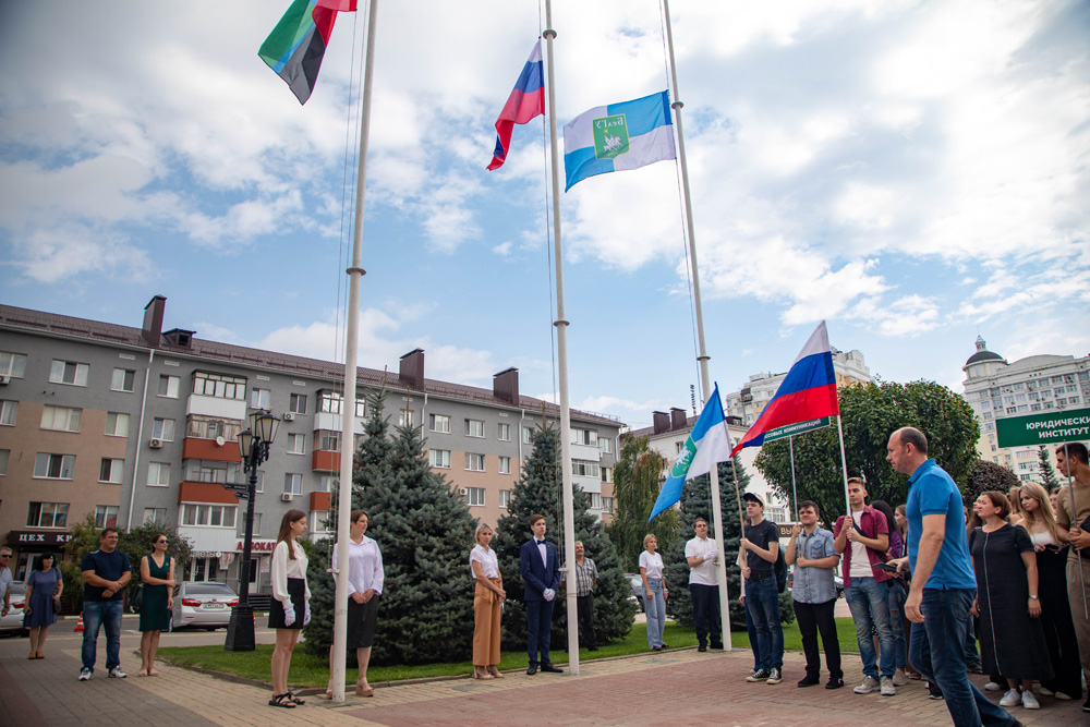 Традиция празднования Дня государственного флага – одно из значимых событий в жизни университета. Каждый год 22 августа на университетской площади проходит торжественная церемония поднятия на флагштоках символов российской государственности.