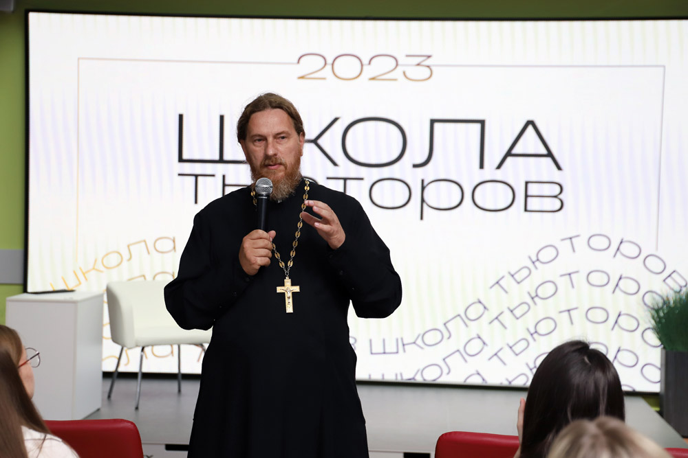 Настоятель домового храма НИУ «БелГУ» им. Архангела Гавриила отец Роман побеседовал с будущими тьюторами, объяснив, что важно вкладывать в других людей то, что хотел бы получить сам: доброту, вежливость, отзывчивость.