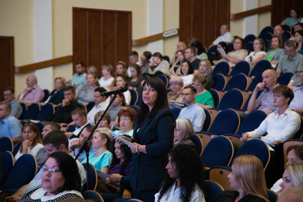 Итоги деятельности по профильным направлениям озвучили и.о. проректора по качеству и дополнительному образованию Владимир Шаповалов, и.о. проректора по международному сотрудничеству Владислав Кучмистый и и.о. проректора по воспитательной работе и молодёжной политике Елена Цуканова.