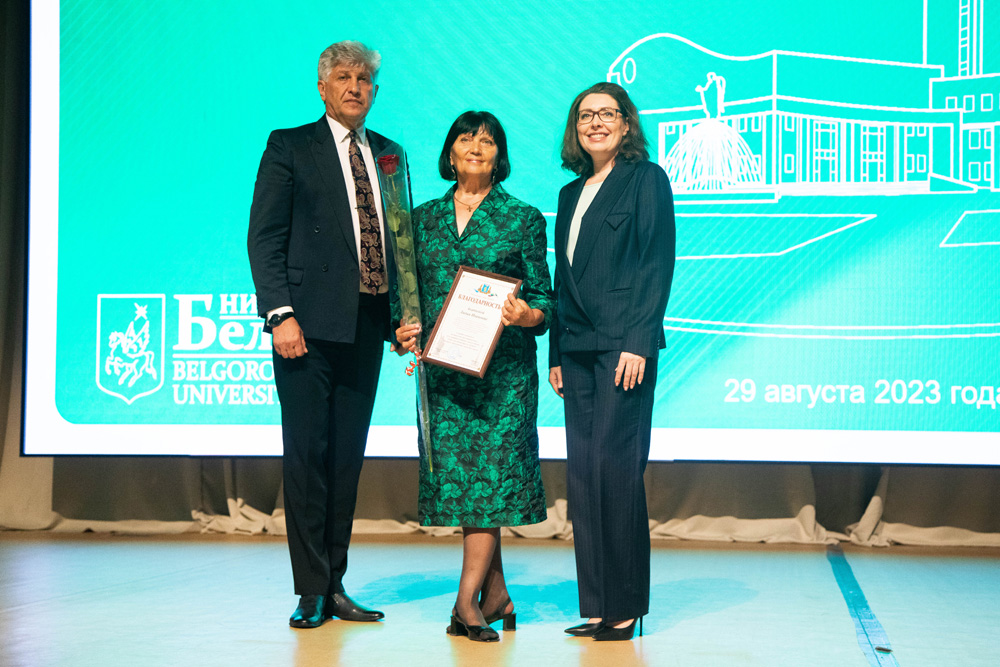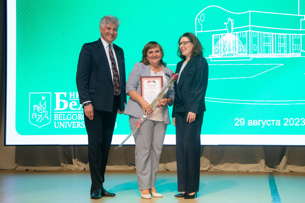 Заведующему кафедрой медико-биологических дисциплин медицинского института Михаилу Чурносову присвоено звание «Почетный профессор НИУ «БелГУ», а доценту кафедры дошкольного и специального (дефектологического) образования факультета дошкольного, начального и специального образования педагогического института Татьяне Алтуховой – «Почётный доцент НИУ «БелГУ». Почетное звание «Ветеран труда НИУ «БелГУ» присвоено ведущему документоведу ректората Наталье Лихошерстовой и доценту кафедры английского языка и методики преподавания факультета иностранных языков педагогического института Ольге Моисеенко.