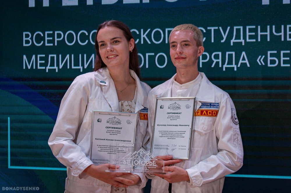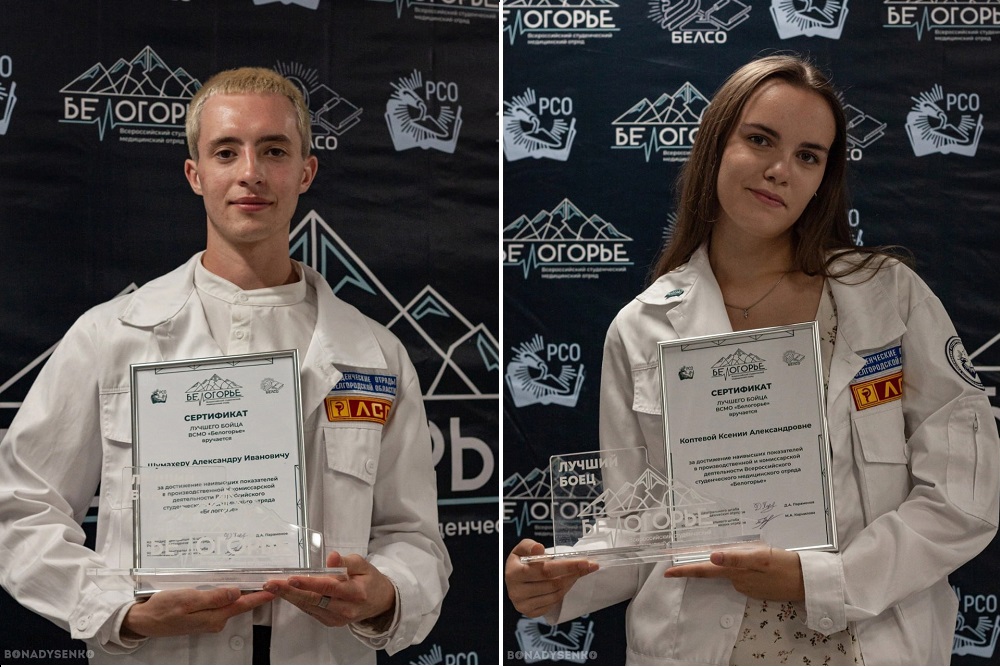 Лучшими бойцами проекта по сумме производственных и комиссарских показателей стали студенты 4 курса сестринского дела медицинского колледжа НИУ «БелГУ» Ксения Коптева и Александр Шумахер.