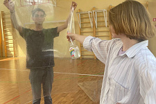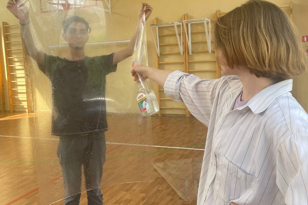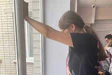 Волонтёры НИУ «БелГУ» помогают обклеивать бронеплёнкой окна школ