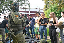 Волонтёры университета в сопровождении доцента кафедры русского языка, профессионально-речевой и межкультурной коммуникации, куратора землячества Африки Анны Маховой и преподавателей инжинирингового колледжа Олеси Шевченко и Дианы Саркисян посетили музей военной техники, который находится на территории бывшего гражданского аэропорта Смоленска. Ребятам рассказали о знаменитом уроженце города Юрии Гагарине, показали космическую еду и одежду космонавтов. Также показали разные виды вооружения и экипировки военных: бронежилет, тактические наушники, оружие. Студенты смогли не только посмотреть, но и примерить бронежилет и каску.