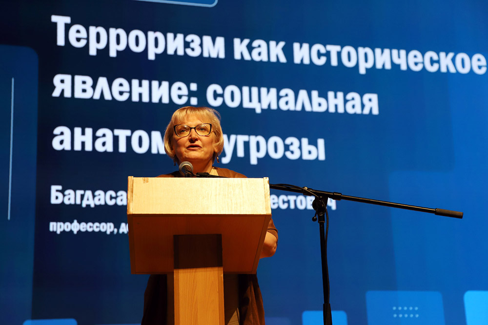 Рассказывая о вызовах времени в лице международного терроризма, Вардан Багдасарян сделал глубокий экскурс в историю этого явления, возникшего ещё в средневековье. Терроризм как форма агрессивного воздействия меньшинства на большинство пережил ряд трансформаций и «эволюционировал» от устранения неугодных персон к акциям массового террора. Отличие современного терроризма – его информационная открытость, с помощью которой воздействие на сознание людей становится глобальным. Во все времена терроризм опирался на ту или иную идеологию: анархии, социалистическую, этническую или конфессиональную, – но всегда шёл вразрез с традиционными ценностями общества.