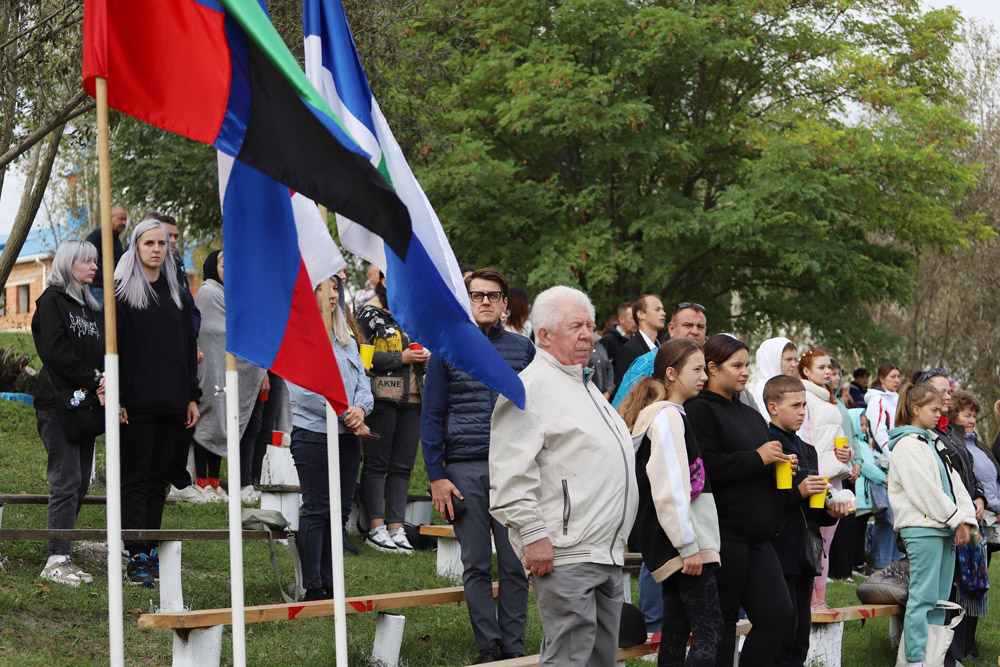 Торжественности спортивному мероприятию придало совместное выступление вокальной группы «Колорит» и учеников конноспортивной школы НИУ «БелГУ», которые посвятили музыкальную композицию подвигу наших предков.