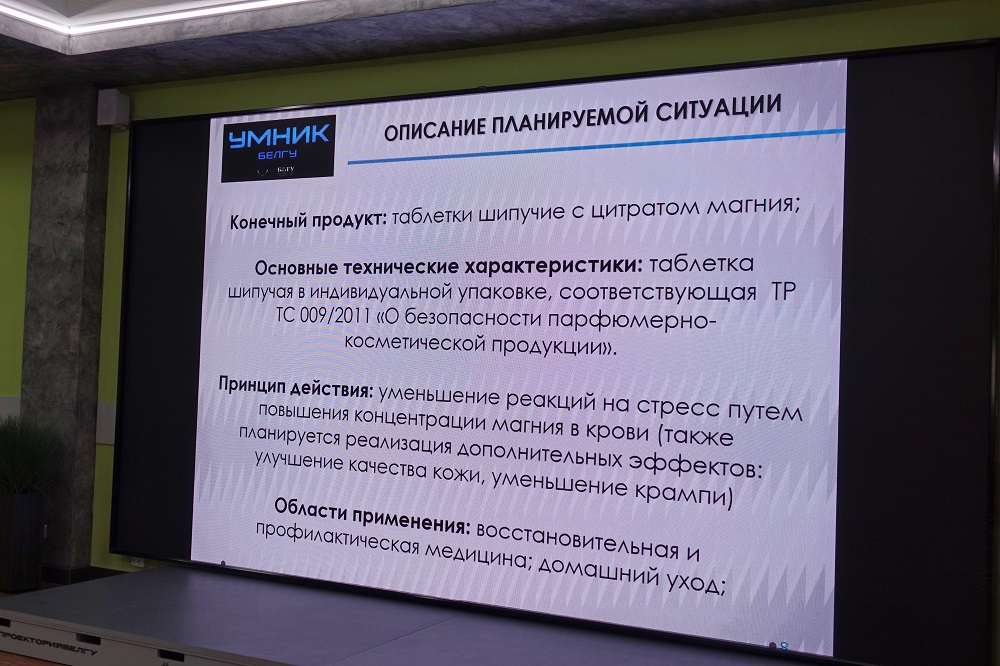 В Белгородском госуниверситете состоялся финал конкурса «УМНИК БелГУ», в котором приняли участие 19 студентов и молодых учёных вуза. Выступления участников оценивало жюри, члены которого обращали внимание на научно-технический уровень продукта, вероятность его коммерциализации и квалификацию заявителя. Максимально по каждому критерию можно было получить 5 баллов.