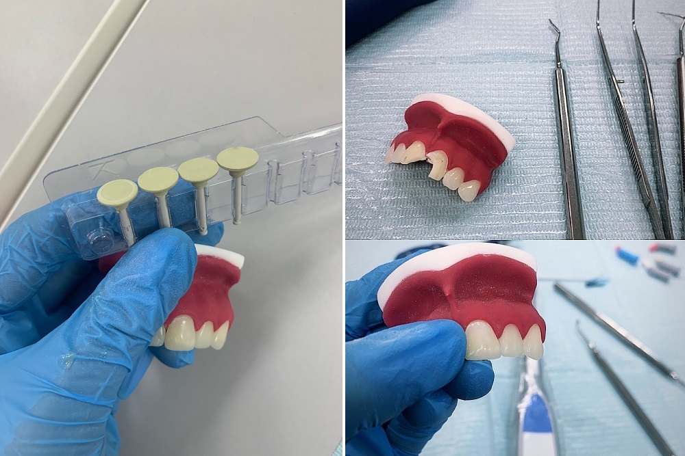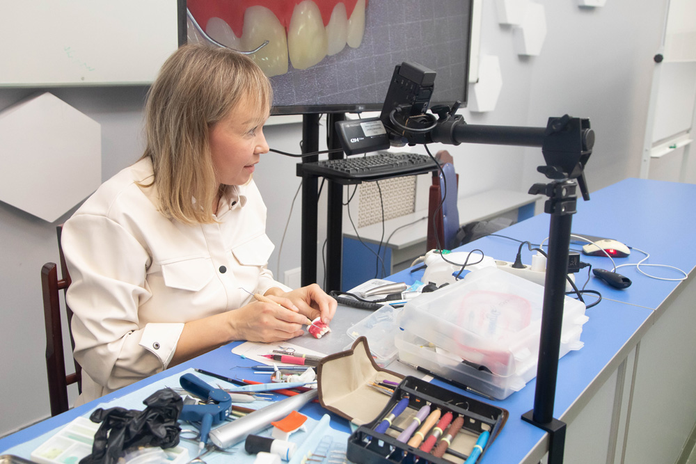 Программа курса включала теоретическую и практическую части. Практику по созданию гармоничных реставраций с точки зрения эстетики и физико-механических свойств слушатели отрабатывали на фантомах.