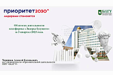 Открывая заседание совета платформы «Лидеры будущего» программы «Приоритет-2030», и.о проректора по образовательной деятельности Алексей Черницов озвучил итоги третьего квартала. Руководитель стратпроекта обратил внимание на то, что все ключевые показатели находятся в плановых значениях или превышают их. Так, доля обучающихся по программам допквалификации на Цифровой кафедре составила 116,54% от запланированных цифр, и этот показатель до конца года ещё увеличится за счёт обучения в рамках консорциума на площадке НИУ «БелГУ» студентов БалГАУ им. В.Я Горина. Плановые показатели превысило и число обучающихся по программам целевого обучения, составив 100,49%,