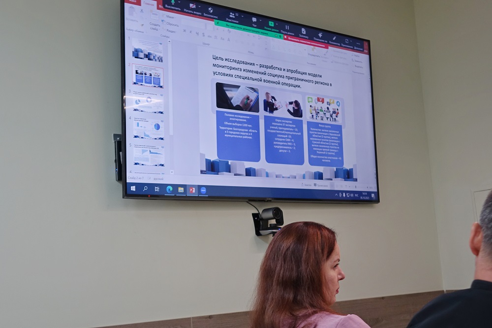 С докладом «Специальная военная операция как триггер консолидационных процессов регионального общества» выступил руководитель научно-исследовательской лаборатории развития гражданского общества НИУ «БелГУ» Александр Гармашев. Он презентовал часть большого исследования, которое проводилось летом этого года в рамках проекта «Разработка научно-методической базы мониторинга изменений социума приграничного региона в условиях специальной военной операции» программы «Приоритет-2030».