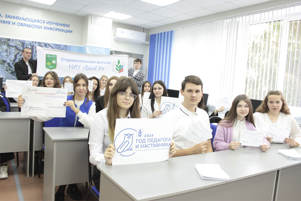В Региональной профсоюзной акции «Телеграмма любимому учителю» приняло участие порядка 100 обучающихся педагогического факультета, факультета экономики и управления и факультета СПО Старооскольского филиала НИУ «БелГУ».