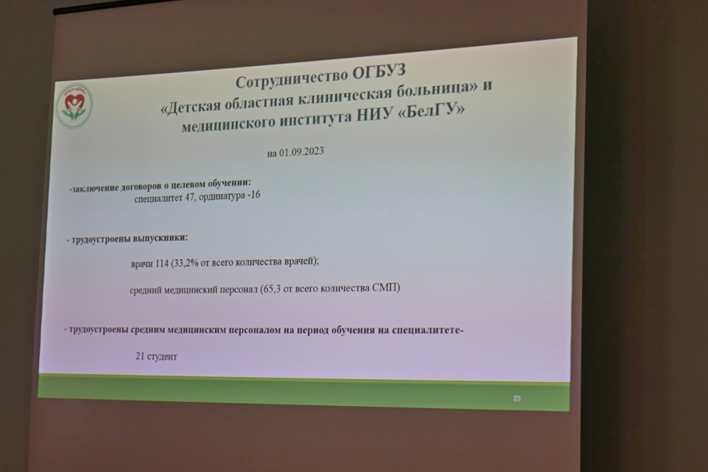 – Детская областная клиническая больница только с начала текущего года заключила 63 договора о целевом обучении студентов и ординаторов. Данный результат – закономерное следствие нашего тесного взаимодействия. Также хочу поблагодарить за приём в вашу семью выпускников медицинского колледжа медицинского института, – сказала исполняющая обязанности ректора.