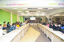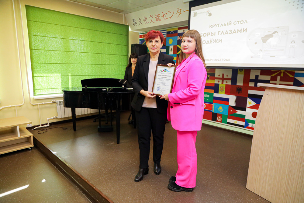 Почётными гостями встречи в Центре межкультурной коммуникации НИУ «БелГУ» стали председатель Белгородской городской территориальной избирательной комиссии Любовь Калабина и заместитель председателя Избирательной комиссии Белгородской области Владимир Троян.