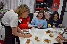 В завершении поездки все делегаты приняли участие в мастер-классе по изготовлению хлеба в кафе-пекарне «Хлебок», где смогли собственными руками сделать булочки, которые в дальнейшем были приготовлены в печах производства и переданы участникам для дегустации. А владелец пекарни Юлия Клименко ознакомила гостей со старинными рецептами приготовления выпечки, а также некоторыми особенностями технологии производства, кадрового обеспечения и компетенций, необходимых для открытия собственного дела.