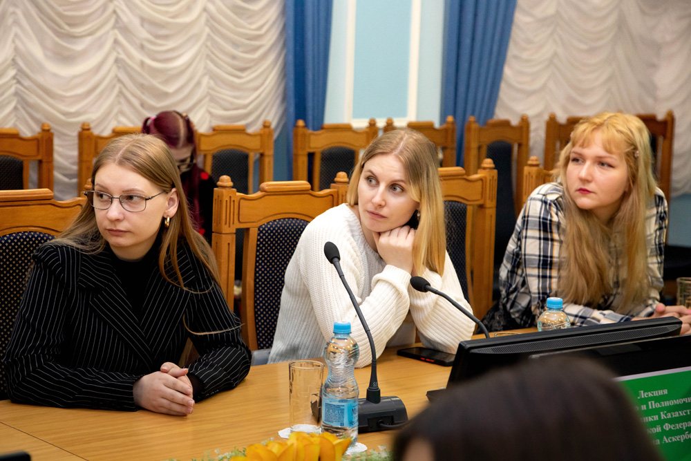 Участники встречи смогли задать вопросы послу. Студентов интересовала ситуация с трудоустройством в Казахстане, востребованность профессий на рынке труда. Даурен Аскербекович отметил, что в республике в данный момент очень востребованы политологи, строители и специалисты инженерных специальностей.