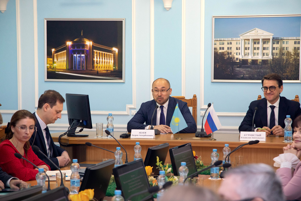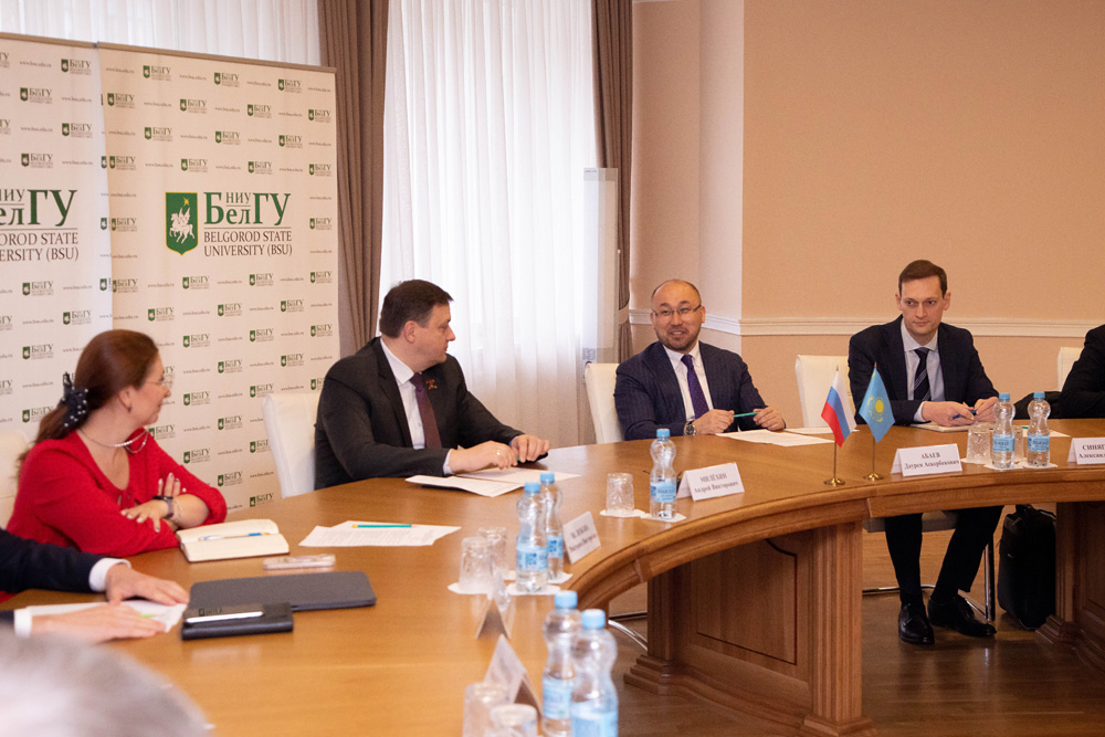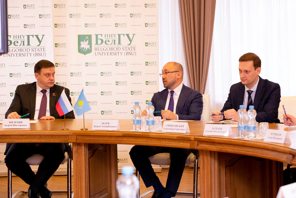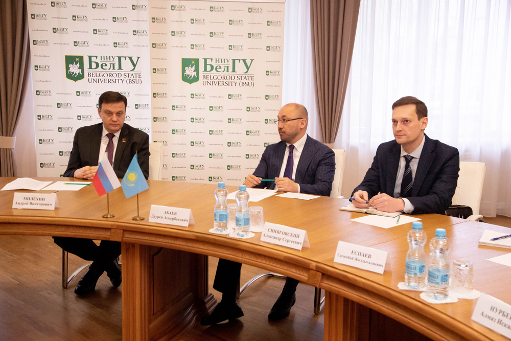 Чрезвычайный и Полномочный посол Республики Казахстан в Российской Федерации Даурен Абаев в сопровождении заместителя губернатора Белгородской области – министра образования региона Андрея Милёхина посетил Белгородский госуниверситет и встретился с руководителями вузов Белгородской области и обучающимися в них студентами – гражданами Республики Казахстан.