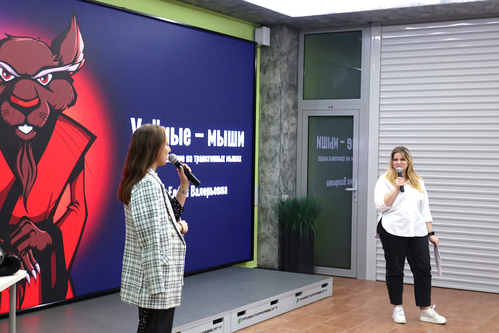Темой выступления аспирантки медицинского института Елены Кузубовой стали трансгенные мыши, которых используют в частности для разработки препаратов от болезни Альцгеймера. Молодой исследователь рассказала о том, почему мыши в лабораторных условиях удобнее крыс и кроликов, зачем требуется несколько поколений грызунов.