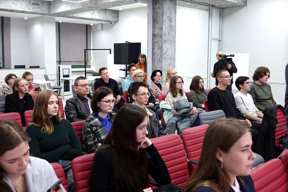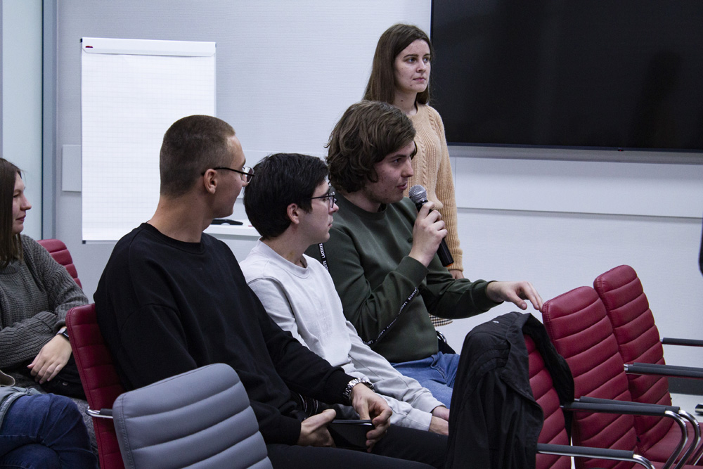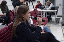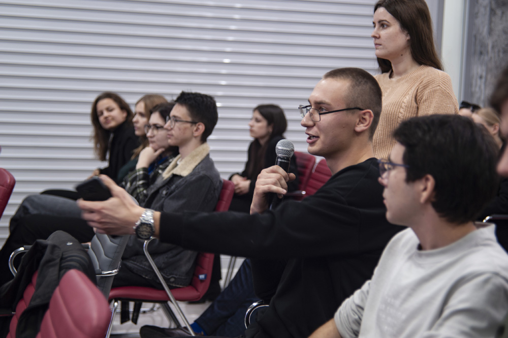Председатель Студенческого научного общества института межкультурной коммуникации и международных отношений Виктория Кутелия рассказала о трудностях перевода с русского языка на иностранный, когда требуется сохранить культурный колорит и особенности речи.