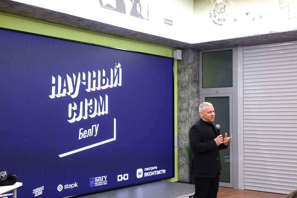 В университетском этапе интеллектуального состязания «Научный слэм» приняли участие четыре молодых учёных НИУ «БелГУ». Как отметил исполняющий обязанности проректора по науке и инновациям Николай Репников, неформальное мероприятие позволяет учёным рассказывать о своих исследованиях в интересной, а иногда и шутливой форме.