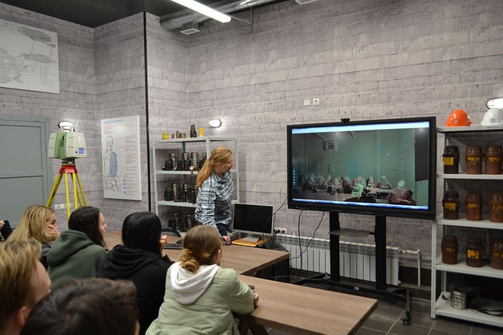 Студенты поучаствовали в процессе пробоподготовки горной породы, увидели, как проходит 3D-съёмка помещения, химический анализ горных пород рентгенофлюресцентным способом, а также попробовали свои возможности в создании топографического плана.
