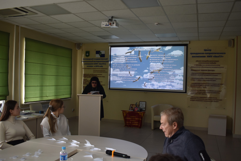 В Центре гражданско-патриотического воспитания обучающихся НИУ «БелГУ» прошёл час памяти, приуроченный ко Дню белых журавлей.
