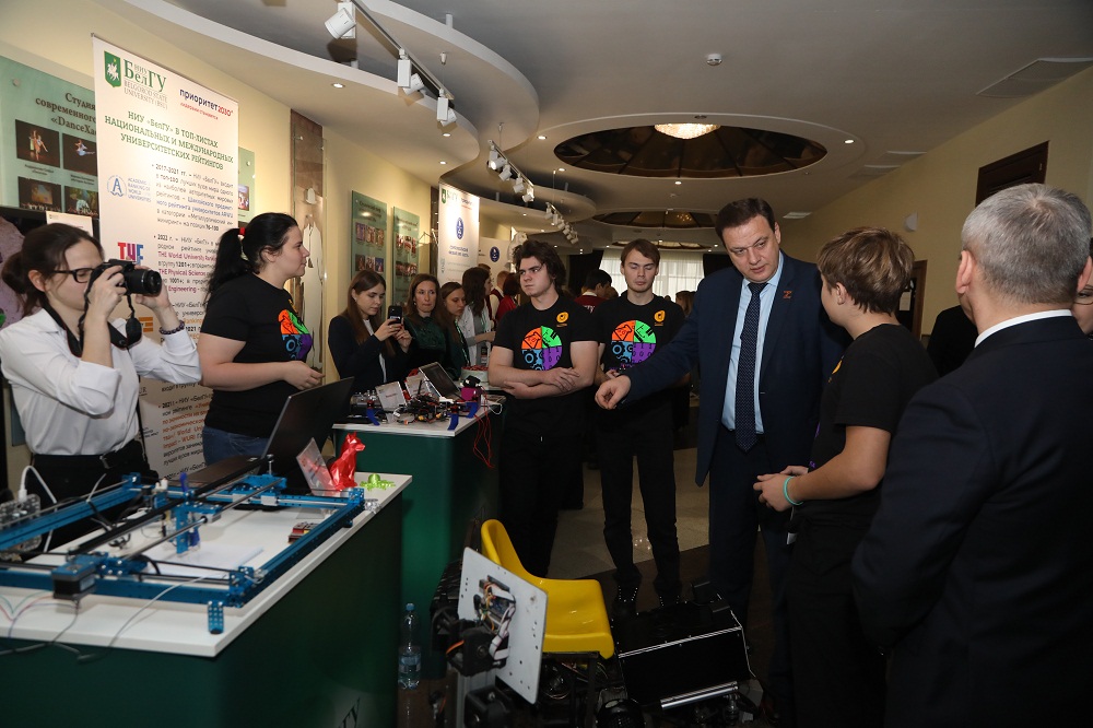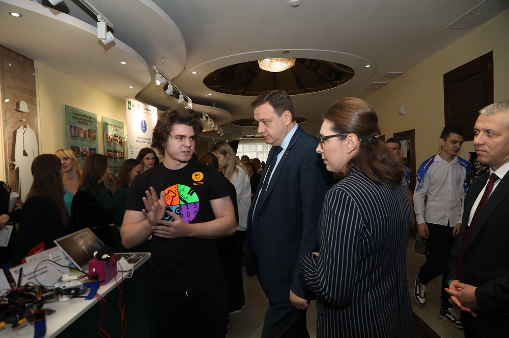 Он вручил благодарности победителям конкурса «Студенческий стартап», среди которых два студента кафедры международного туризма и гостиничного бизнеса института экономики и управления НИУ «БелГУ» и студент института инженерных и цифровых технологий. Антон Голев получил награду за проект «Серии конструктора для детей, представляющие собой наборы деталей для сборки и моделирования разнообразных предметов», а Лидия Мазохина – за проект «Разработка online-платформы Klever для предприятий общественного питания с целью реализации нераспроданной продукции». Студент института инженерных и цифровых технологий НИУ «БелГУ» Ростислав Никулин был награждён за победу в конкурсе «СТАРТ 4».